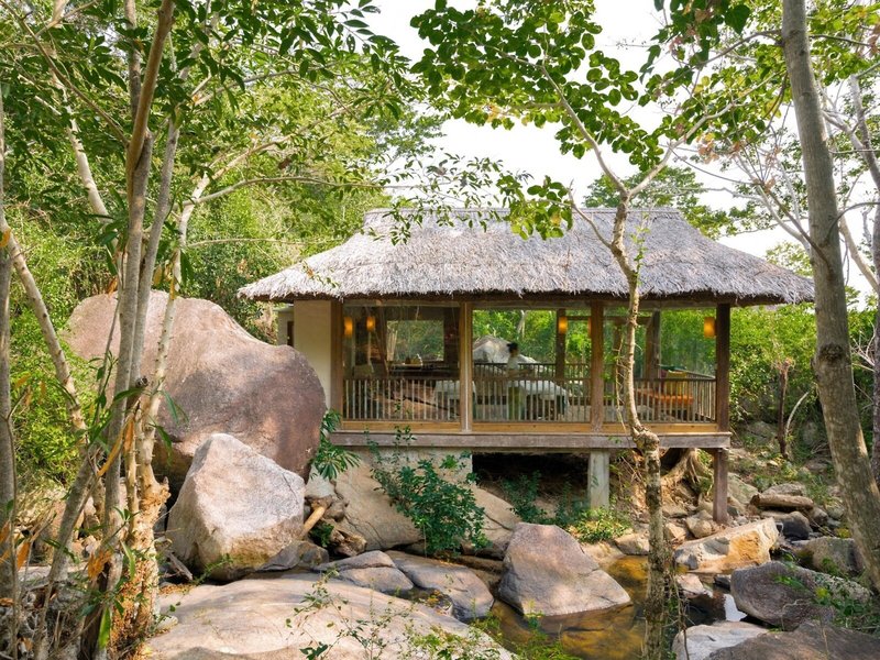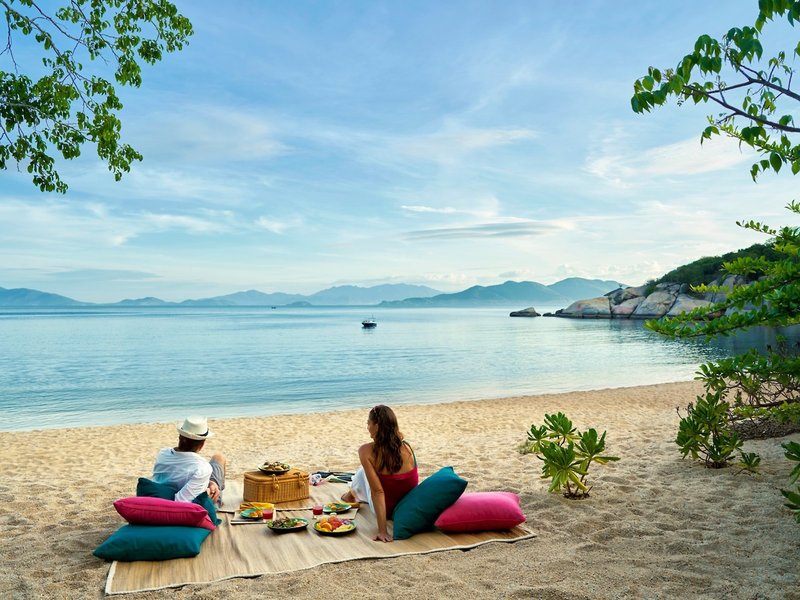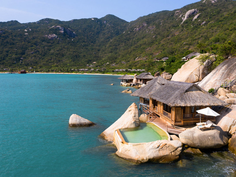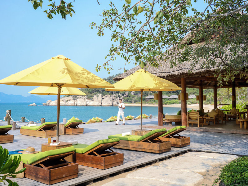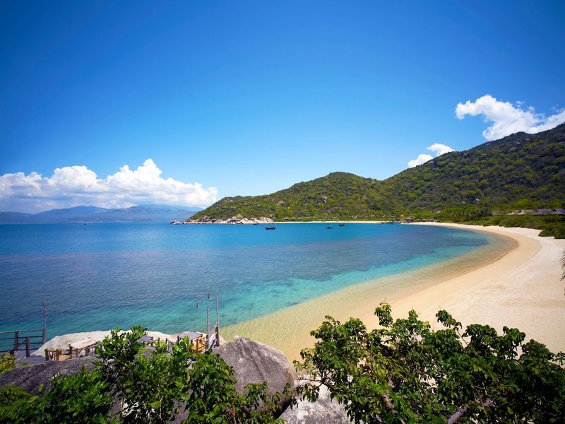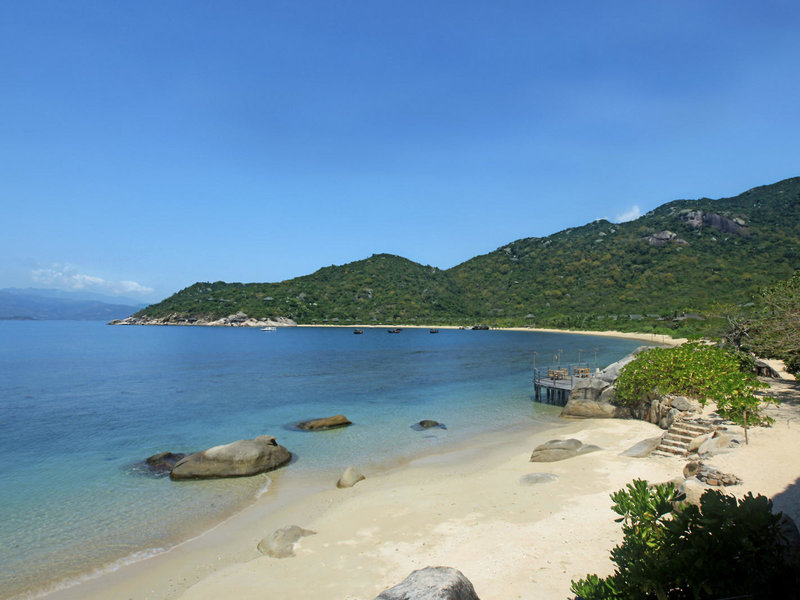 Poloha a okolie Rezort sa nachádza na fantastickom mieste na polostrove priamo na jemnej piesočnatej pláži v zálive Ninh Van. Komplex dokonale zapadá do impozantných skalných útvarov a dažďového pralesa s pohorím v pozadí a dá sa doň dostať iba loďou. Čas prenosu: cca 75 minút.