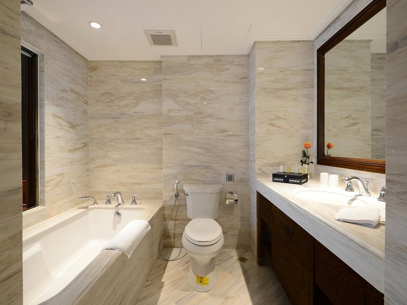 So wohnen Sie: Für angenehmes Raumklima in den Zimmern sorgen eine Klimaanlage und eine Heizung. Ein Balkon oder eine Terrasse ist in den meisten Zimmern vorhanden. Die Zimmer verfügen über ein Doppelbett, ein Queensize-Bett oder ein Kingsize-Bett. Zustellbetten können angefordert werden. Außerdem sind ein Safe, eine Minibar und ein Schreibtisch verfügbar. Eine Tee-/Kaffeemaschine zählt ebenfalls zur Standardeinrichtung. Ferner gibt es ein Bügelset und eine Hosenpresse. Besten Urlaubskomfort bieten ein Telefon, ein TV-Gerät mit Satelliten-/Kabelempfang und WiFi (ohne Gebühr). Zu den Vorzügen der Zimmer gehören Hausschuhe. Im Badezimmer, mit einer Dusche und einer Badewanne ausgestattet, stehen für die Gäste ein Haartrockner und Bademäntel bereit. Als Besonderheit genießen die Gäste in den Badezimmern Kosmetikartikel und eine Auswahl an Handtüchern. Die Unterbringung bietet Familien- und Nichtraucherzimmer.
